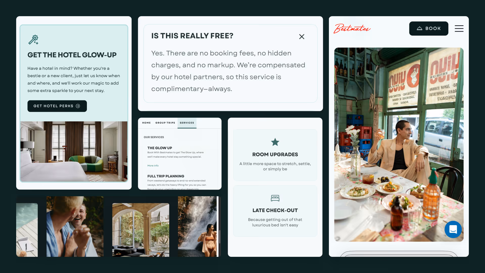 A brand system that runs a real business. Two years in, Bestmates operates with five travel advisors, multiple concurrent group trips, a named perks product, and an active client base — all within a visual and verbal identity built to hold together across every format and touchpoint.